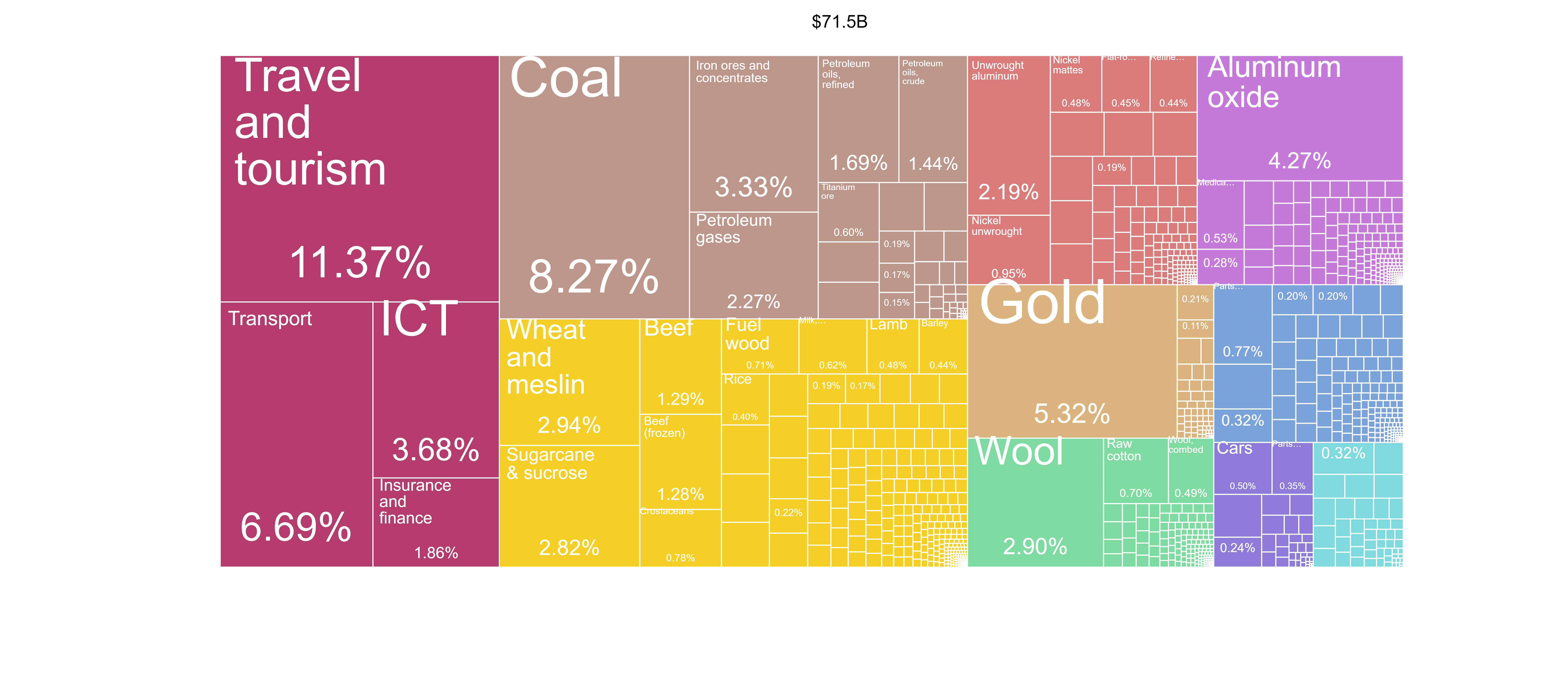 The report states that “Australia has seen a troubling pattern of export growth, with the largest contribution to export growth coming from low and moderate complexity products, particularly Ores, slag and ash and Mineral fuels, oils and waxes products.”